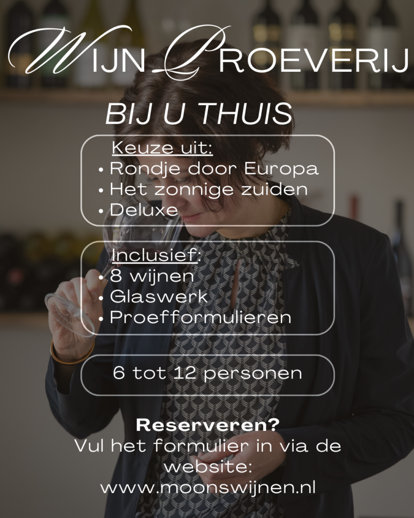 Ben je op zoek naar een wijnproeverij aan huis in Cuijk of omgeving? Bij Moons Wijnen verzorg ik – Monique – persoonlijke en sfeervolle wijnproeverijen bij jou thuis.