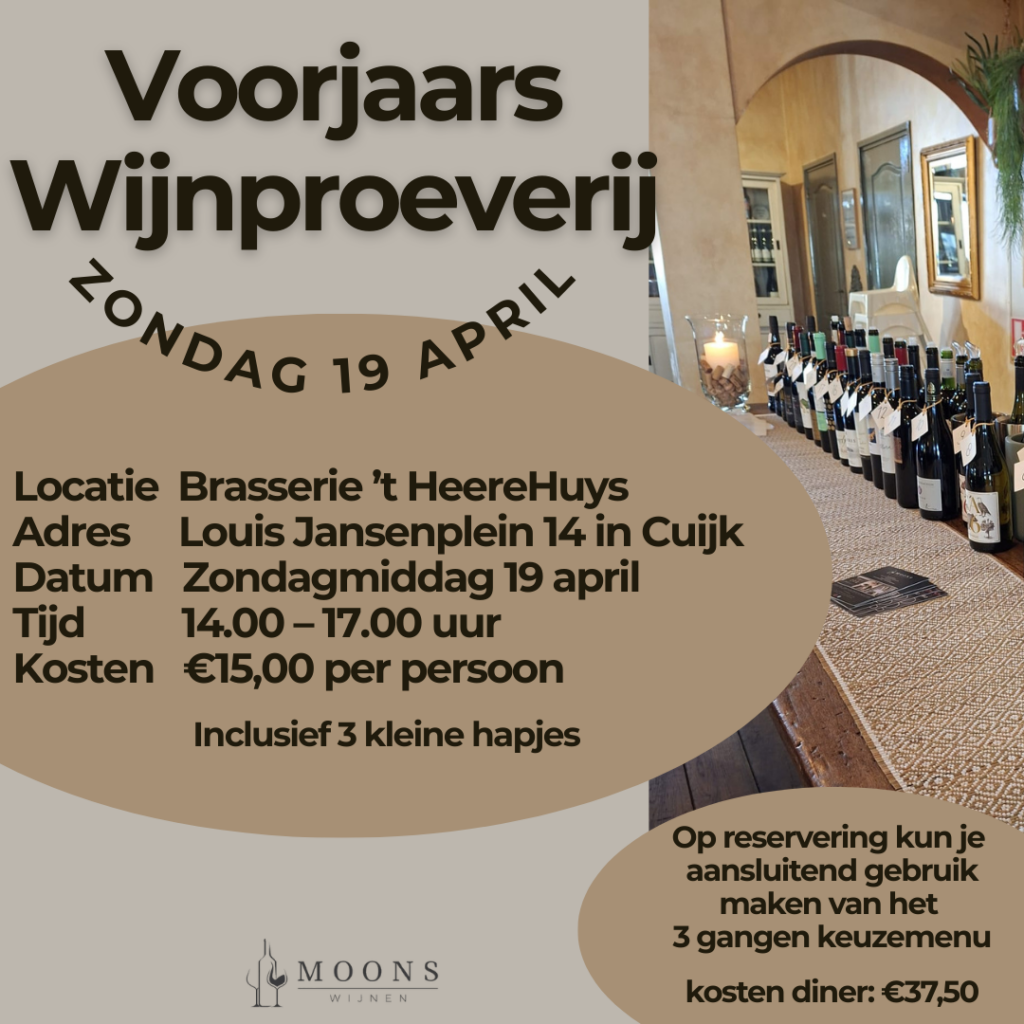 Bij binnenkomst ontvang je een overzicht van alle wijnen op de proeftafel, zodat je zelf kunt kiezen wat je wilt proberen. Ik sta bij de proeftafel om je er graag meer over te vertellen.
